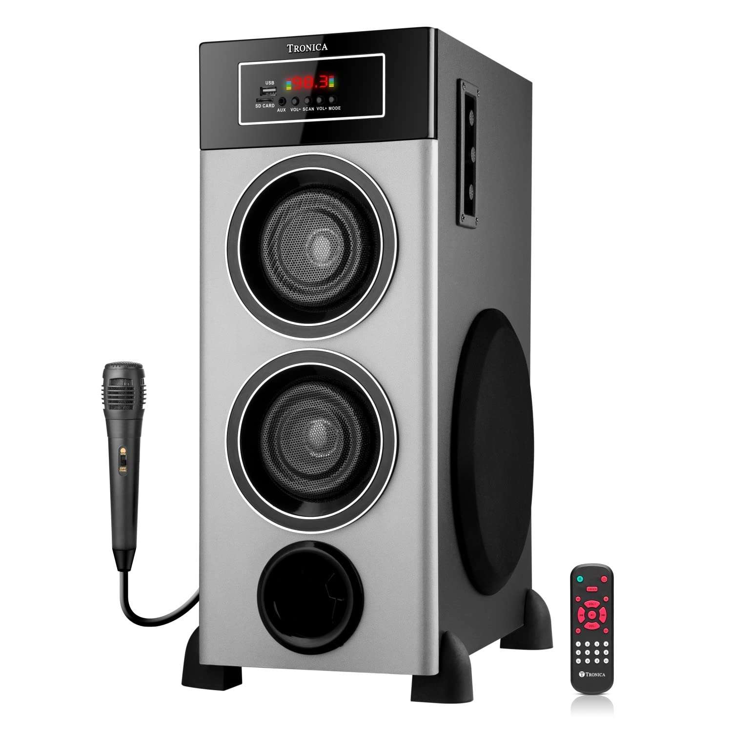 - 100 W Tronica party blaster in solid MDF cabinet with 8 inches woofer & two 4 inches mid range speakers