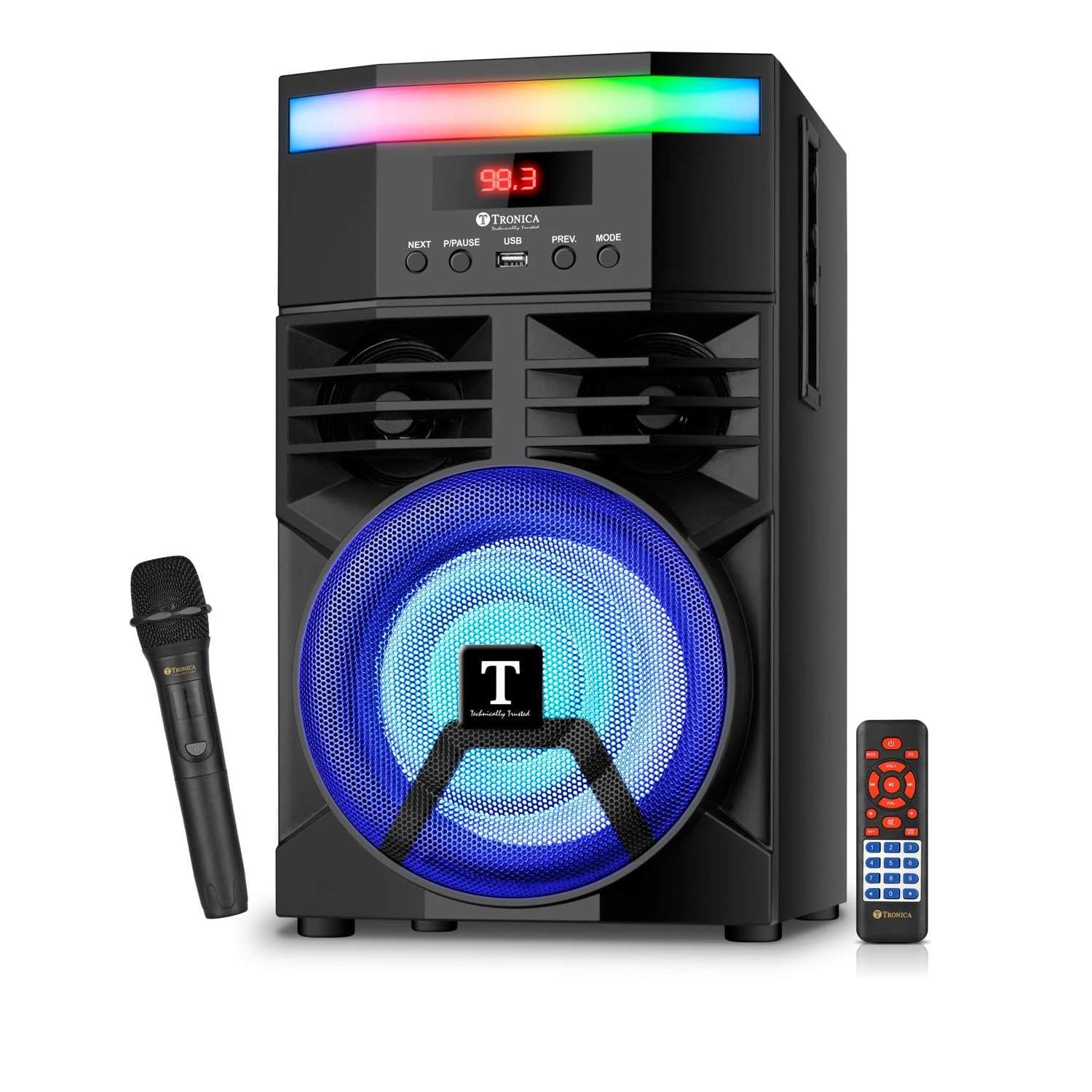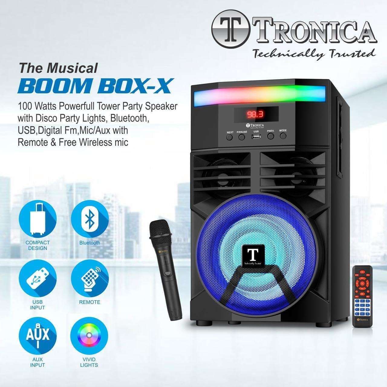 TRONICA The Musical Boombox-X 100 Watts Powerfull Tower Party Speaker with Disco Party Lights, Bluetooth, USB, Digital Fm,Mic/Aux with Remote & Free Wireless mic